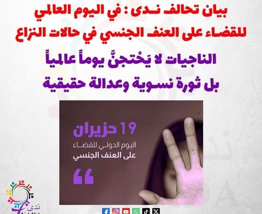 ورغم أن الأمم المتحدة في عام 2015 أقرت هذا اليوم يوماً عالمياً، تكريماً للناجيات وللناجين من العنف الجنسي في النزاعات، وتذكيراً للمجتمع الدولي بمسؤوليته الأخلاقية والقانونية. لكننا في “تحالف ندى” نعلنها بوضوح: هذا الاعتراف لا يكفي. فالناجيات لا يحتجن إلى أيام رمزية، بل إلى عدالة ثورية، تغيير جذري، وأنظمة تحمي، لا تشرعن الاغتصاب.