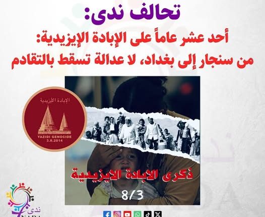 في الثالث من آب عام 2014، ارتُكبت بحقّ المجتمع الإيزيدي واحدة من أفظع الجرائم في العصر الحديث، إبادة جماعية ممنهجة نفّذها تنظيم إرهابي بوحشيةٍ ممنهجة حصدت آلاف الأرواح، وخلّفت آلاف المختطفين والمختطفات، من شهيدات ومفقودات وناجيات ما زلن يحملن الندوب في الجسد والذاكرة. هذه الجريمة، التي توفّرت لها كل شروط “الإبادة” وفق القانون الدولي، لم تكن مجرد فصلٍ مأساوي في تاريخ العراق، بل اختباراً أخلاقياً ووطنياً لا يزال مفتوحاً أمام الدولة والمجتمع معاً.